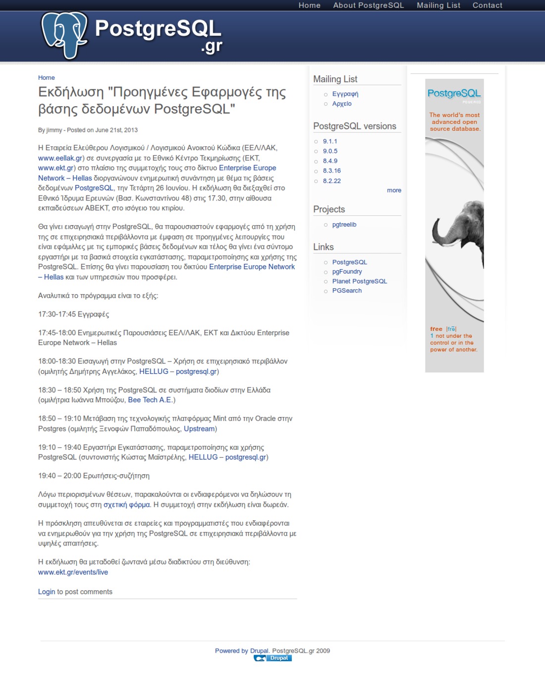 Εκδήλωση "Προηγμένες Εφαρμογές της βάσης δεδομένων PostgreSQL" (2013-06)