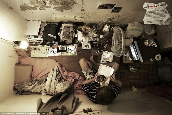 Hong Kong's human battery hens: Claustrophobic images show how slum families squeeze their lives into the tiniest apartments (2013-09-17)